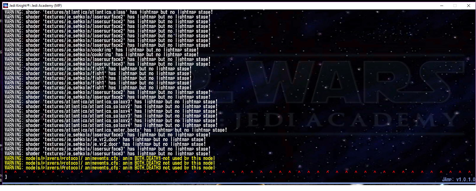 Fenn Rahm wrote:This is a really late reply but deleting zzzzzzGalacticSenators.pk3 fixed the issue for me.
