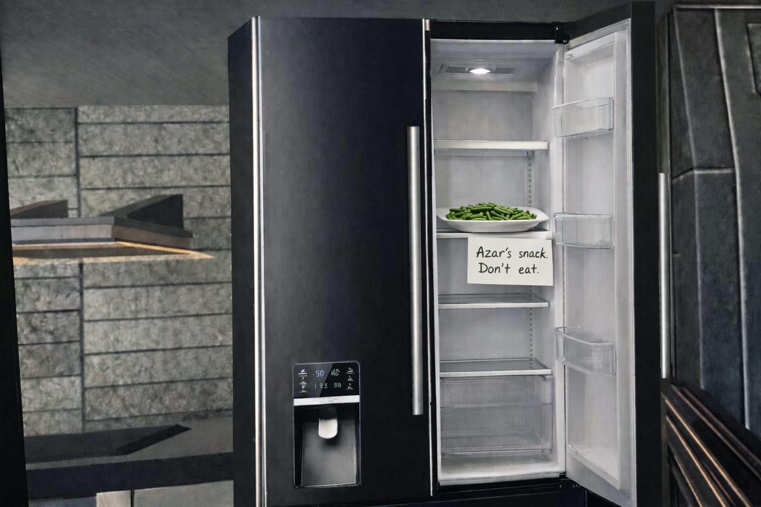 ::If anyone was to open a fridge, all foods so far spread around will moved closer to one another, to create space for new adition.::